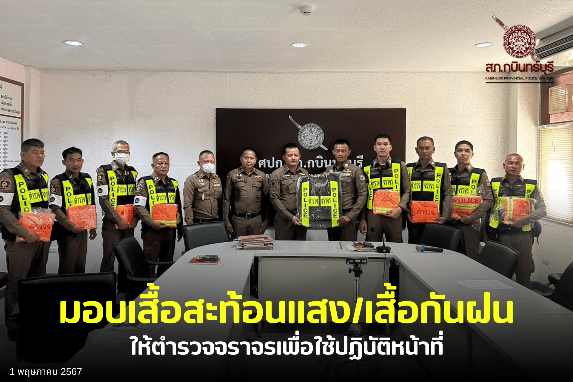 มอบเสื้อสะท้อนแสงและเสื้อกันฝนซึ่งได้รับการสนับสนุนฯ ให้กับข้าราชการตำรวจที่ปฎิบัติหน้าที่งานจราจรทุกนาย