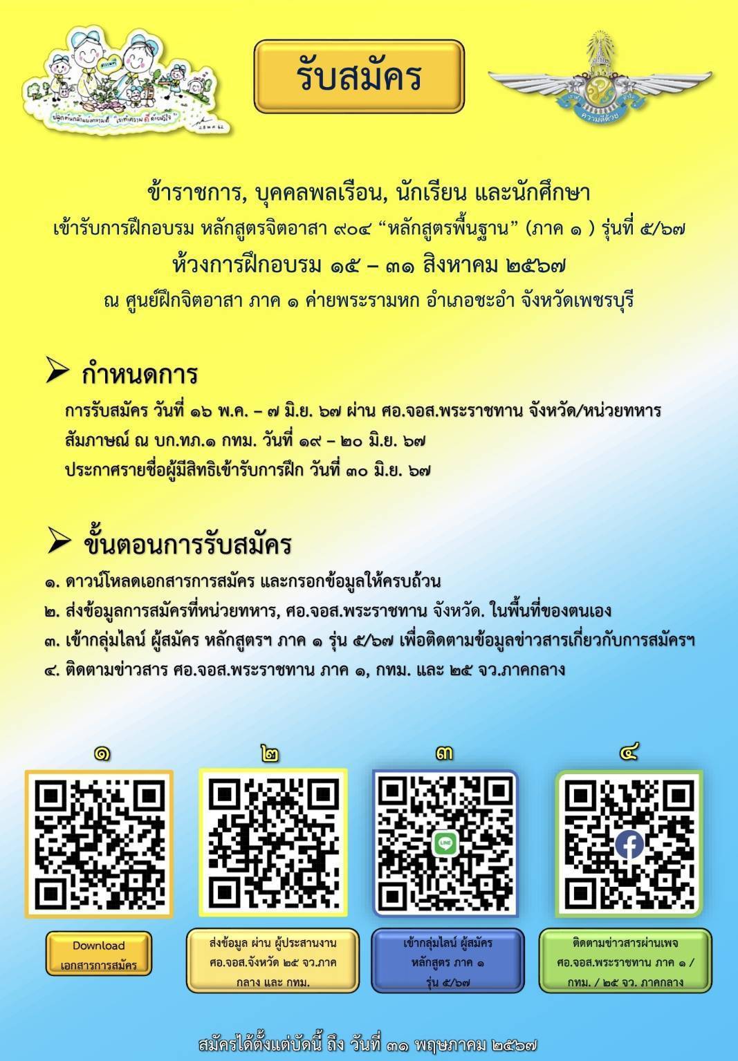 เปิดรับสมัครเข้ารับการอบรมหลักสูตรจิตอาสา 904 “หลักสูตรพื้นฐาน” (ภาค 1) รุ่นที่ 5/67