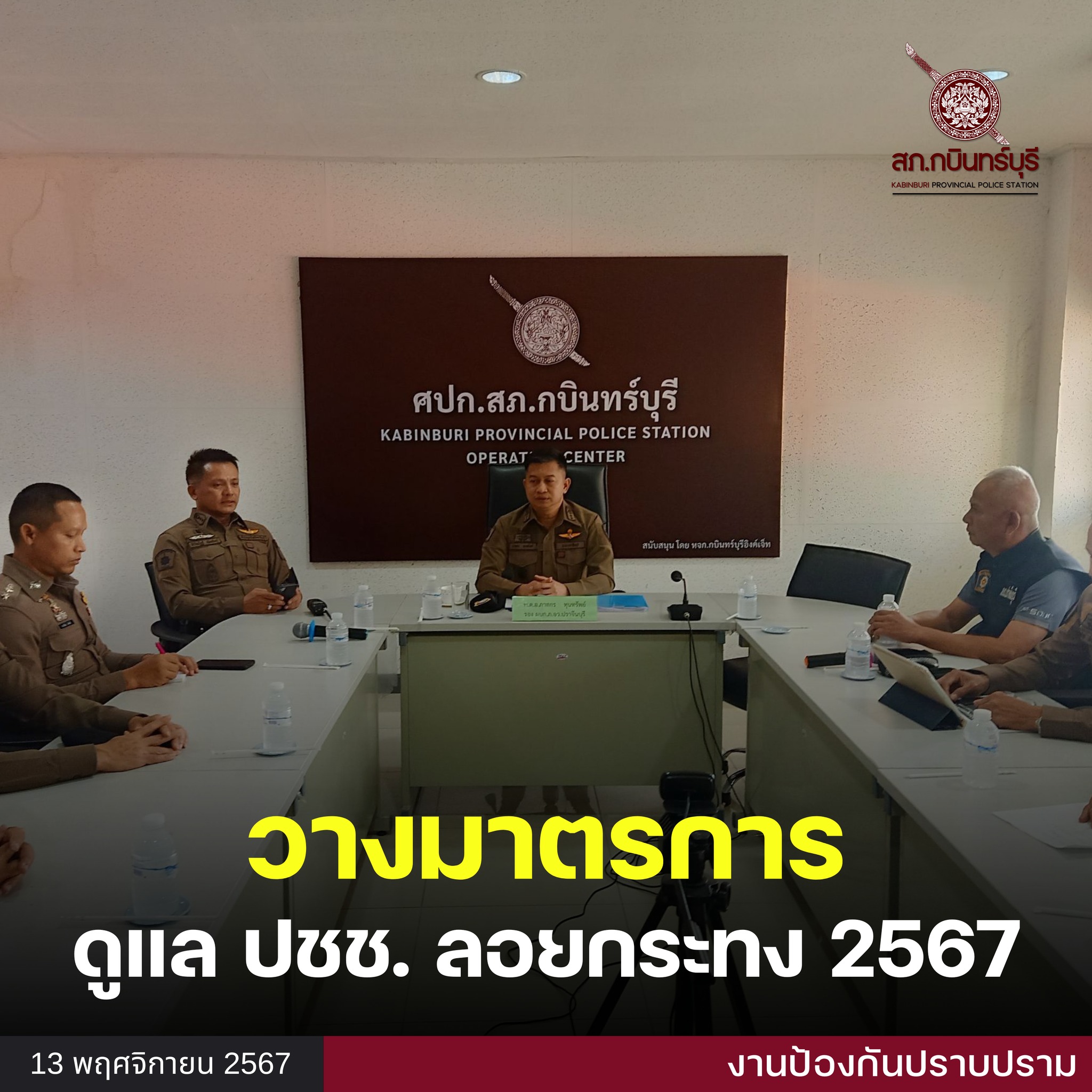 ประชุมกำชับมาตรการป้องกันปราบปรามอาชญากรรม การรักษาความปลอดภัยในชีวิตและทรัพย์สินของประชาชนและนักท่องเที่ยวในช่วงเทศกาลประเพณีลอยกระทง ปี 2567