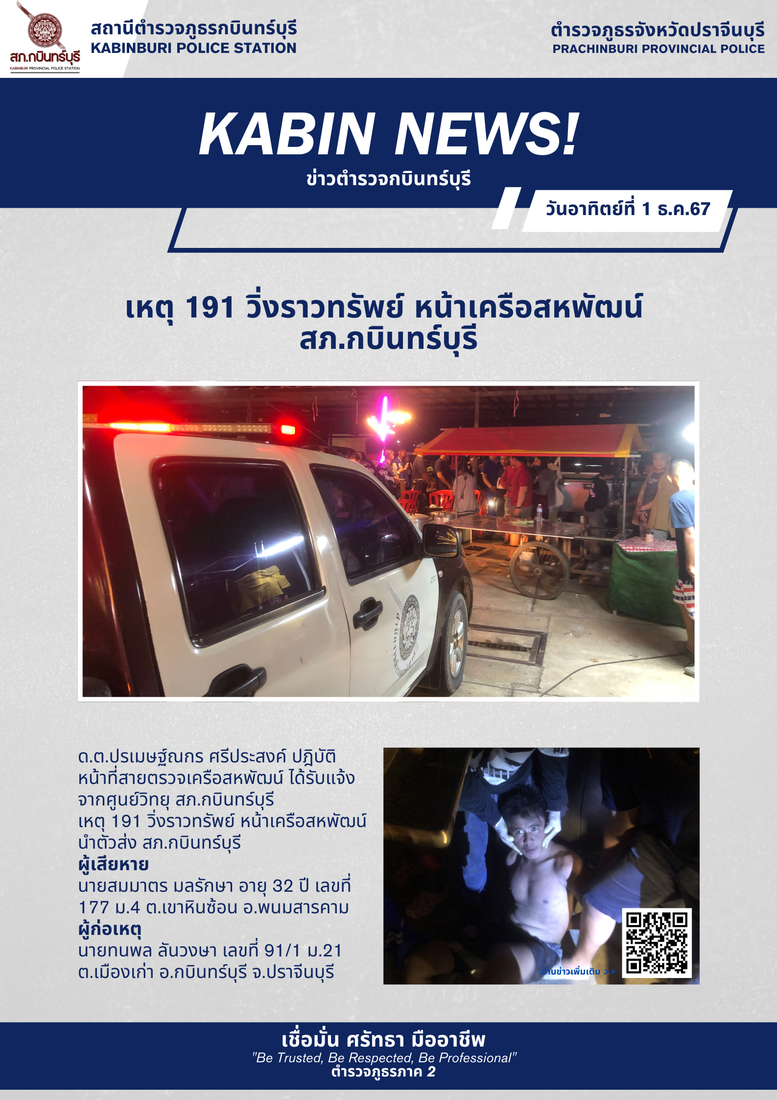 วันที่ 2 ธ.ค.67 เวลา 07.35 น. ร.ต.อ.โกวิท กัดไธสง รอง สวป.สภ.กบินทร์บุรี ร้อยเวรจราจร พร้อมเจ้าหน้าท