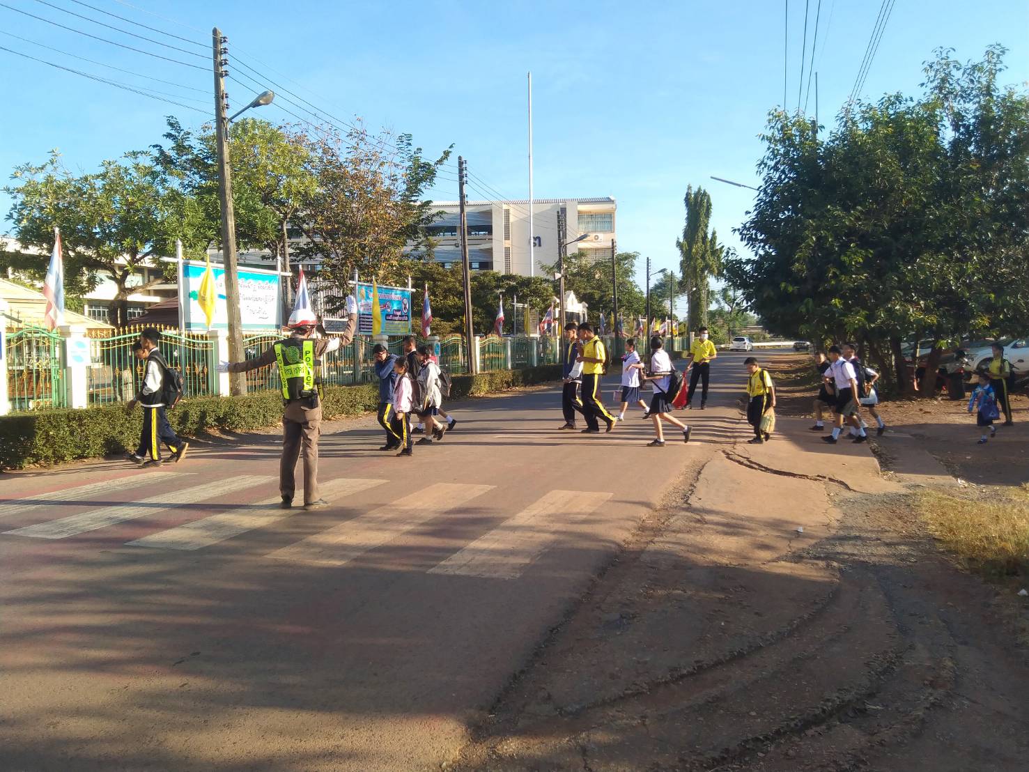 ตำรวจจราจร อำนวยความสะดวกด้านการจราจรแก่เด็กนักเรียน บริเวณหน้าโรงเรียนกบินทร์จริยาคม