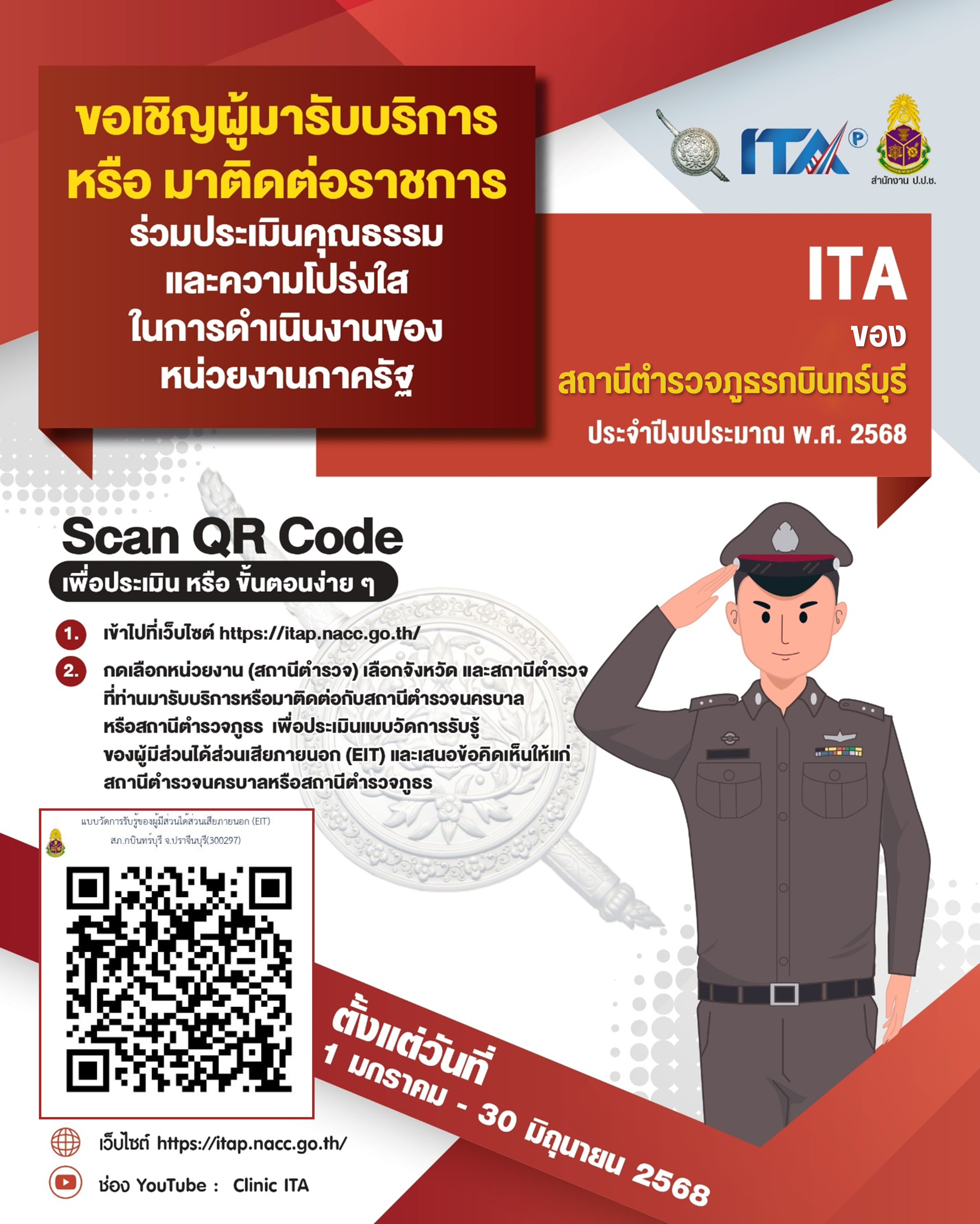 สถานีตำรวจภูธรกบินทร์บุรี ขอเชิญชวน ผู้มารับบริการหรือมาติดต่อราชการ สถานีตำรวจ ร่วมจัดทำ แบบวัดการร