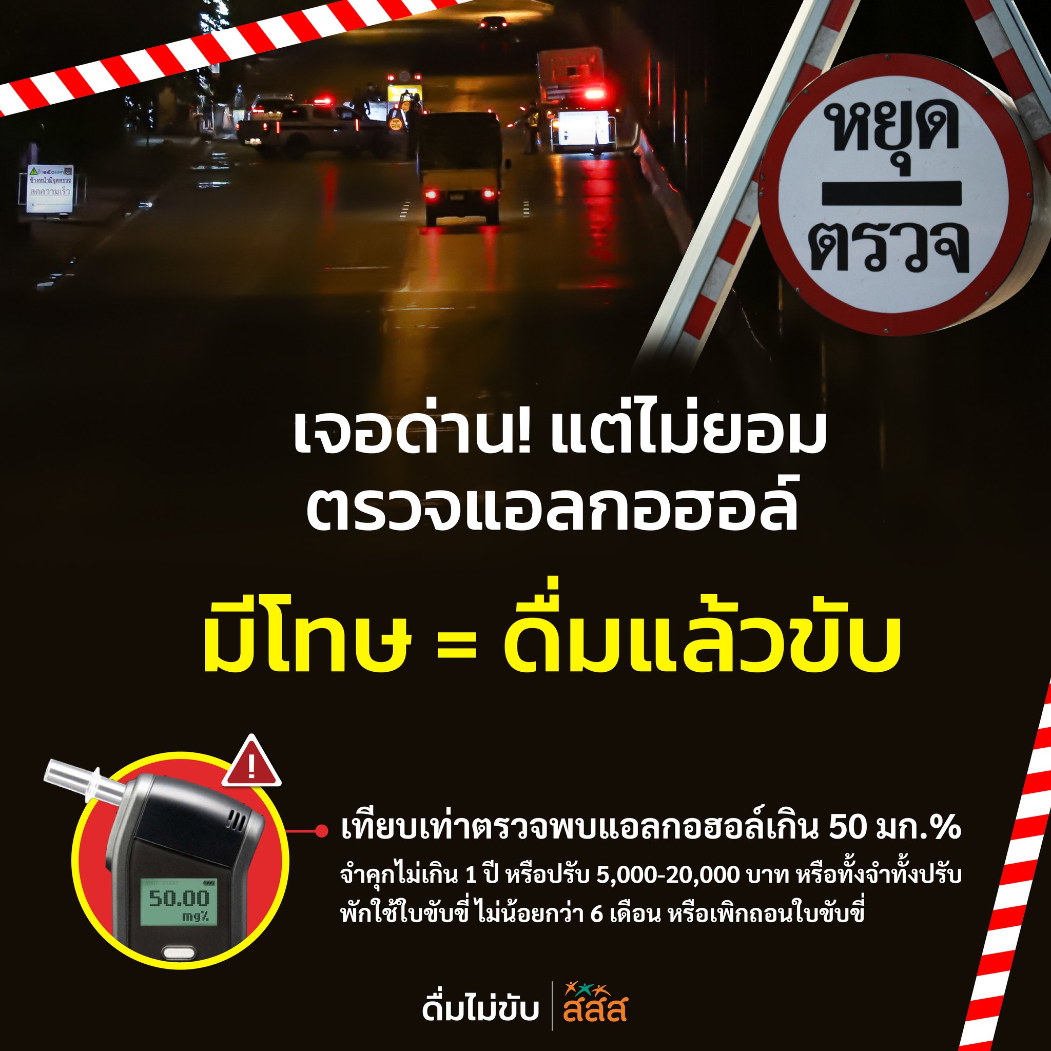 เจอด่านแต่ไม่ยอมให้ตรวจแอลกอฮอล์ มีโทษเท่ากับดื่มแล้วขับเลยนะ วางแผนให้ดี ถ้าคิดจะดื่ม ให้ทิ้งรถไว้ท