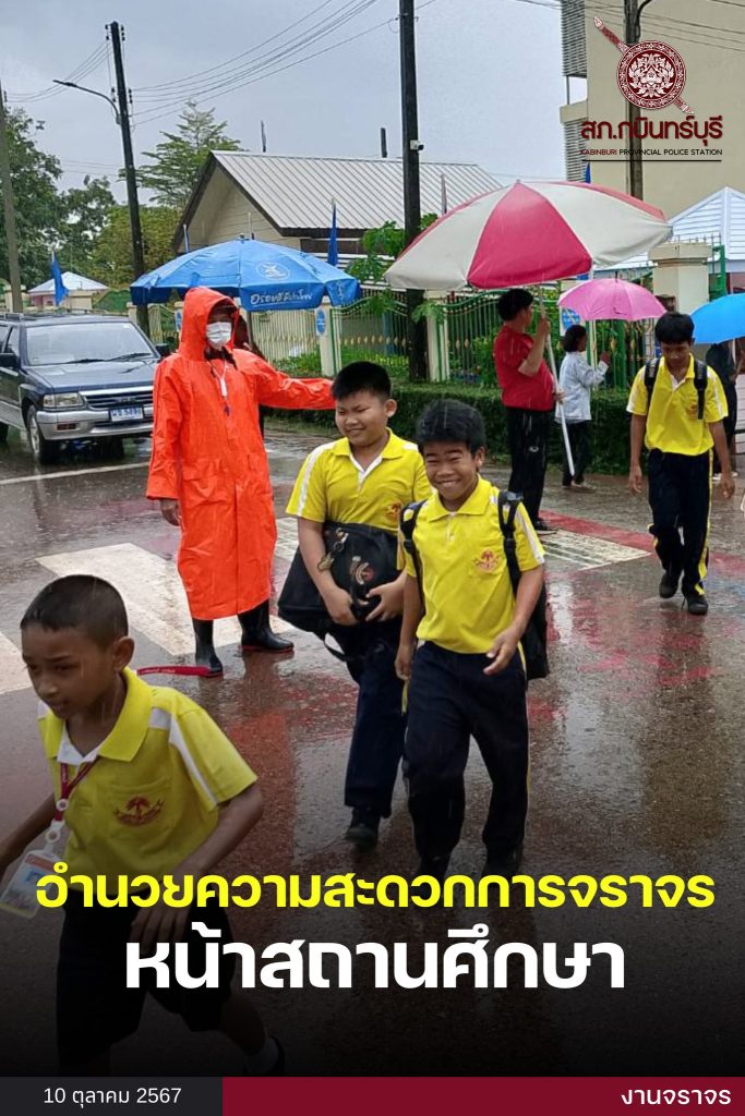 วันที่ 10 ต.ค.67 เวลา 15.20 น. ร.ต.ท.ประภาส อุดง รอง สว.(จร.)สภ.กบินทร์บุรี ออกปฏิบัติหน้าที่อำนวยความสะดวกด้านการจราจร ประจำจุดหน้าโรงเรียนกบินทร์จริยาคม (กจ.) การจราจรคล่องตัว ไม่มีรถติดสะสม เหตุการณ์ทั่วไปปกติ