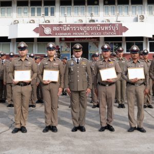 วันที่ 17 ต.ค.67 พ.ต.อ.ศิวัชณัฏฐ์ คุ้มทรัพย์ ผกก.สภ.กบินทร์บุรี ประธานพิธี, พ.ต.ท.ชูเกียรติ สุขสวัสดิ์ รอง ผกก.สส.สภ.กบินทร์บุรี, พ.ต.ท.เริงกฤตยชญ์ รักชาติ รอง ผกก.(สอบสวน) สภ.กบินทร์บุรี, พ.ต.ท.ธรณ์ธันย์ โพธิ์ศรี รอง ผกก.(สอบสวน) สภ.กบินทร์บุรี ,พ.ต.ท.สมชาย ปัดภัย รอง ผกก.ป.สภ.กบินทร์บุรี พร้อมข้าราชการตำรวจในสังกัด และครอบครัวตำรวจ