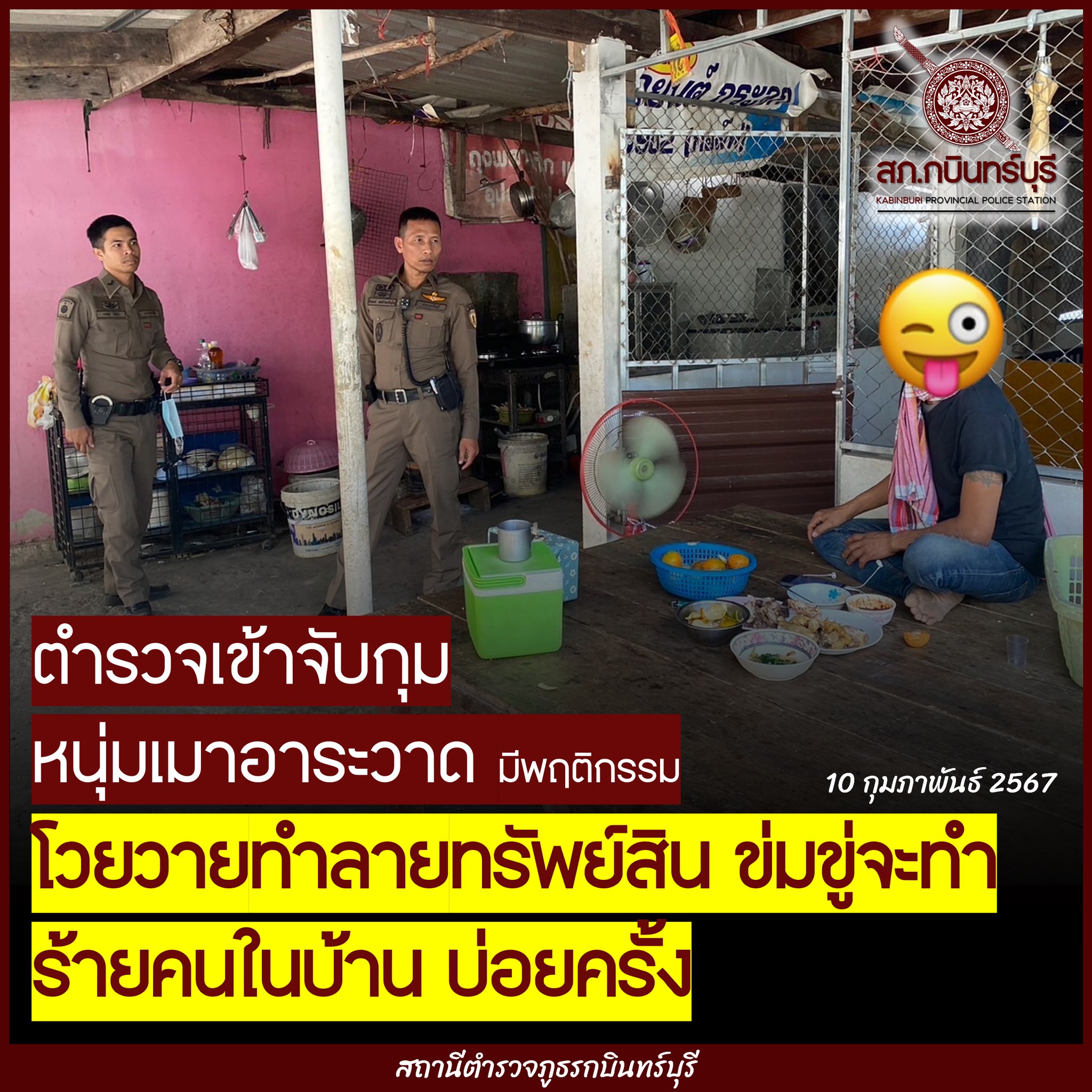 จับหนุ่มเมาอาละวาดโวยวายทำลายทรัพย์สิน
