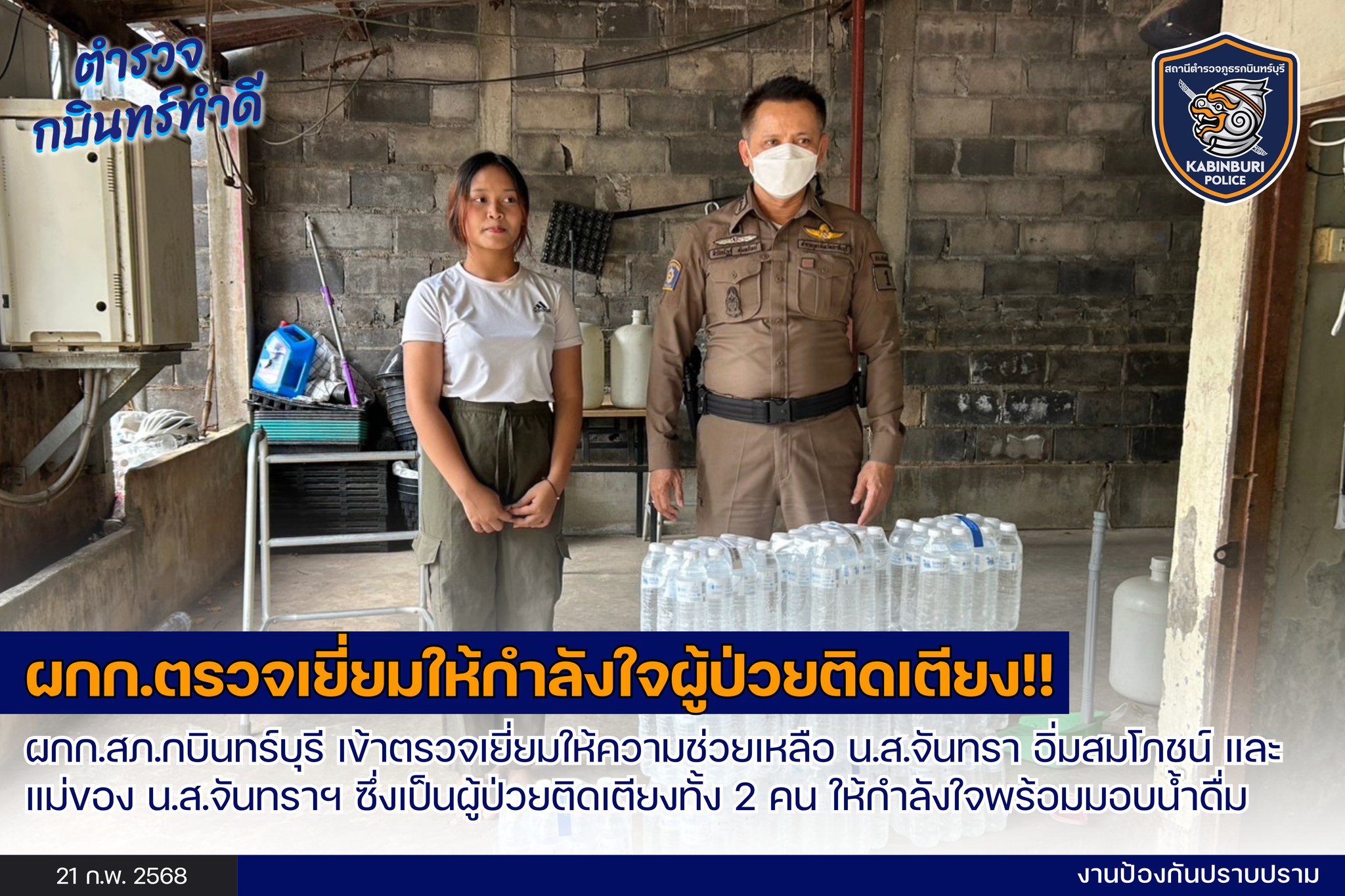 ผกก.สภ.กบินทร์บุรี เข้าตรวจเยี่ยมให้ความช่วยเหลือ น.ส.จันทรา อิ่มสมโภชน์ และแม่ของ น.ส.จันทราฯ