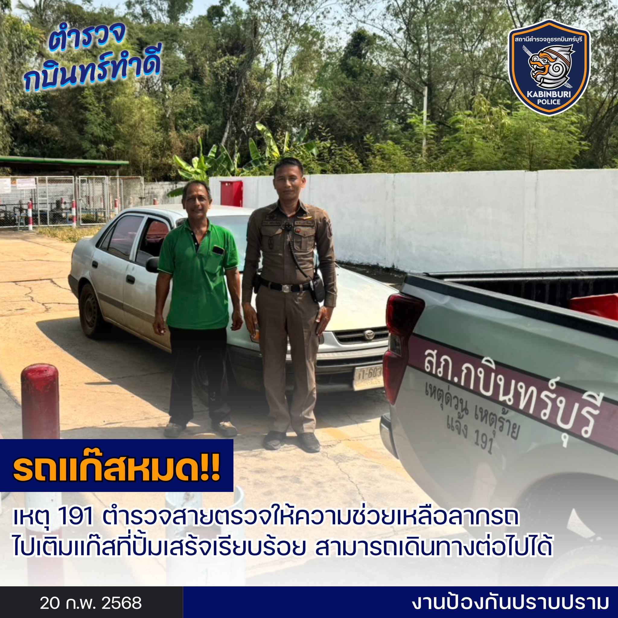 วันที่ 20 ก.พ.68 เวลา 13.00 น. ร.ต.อ.ธีรพงษ์ เดชอำพรภิญโญ รอง สวป.สภ.กบินทร์บุรี พร้อมกำลังสายตรวจรถ