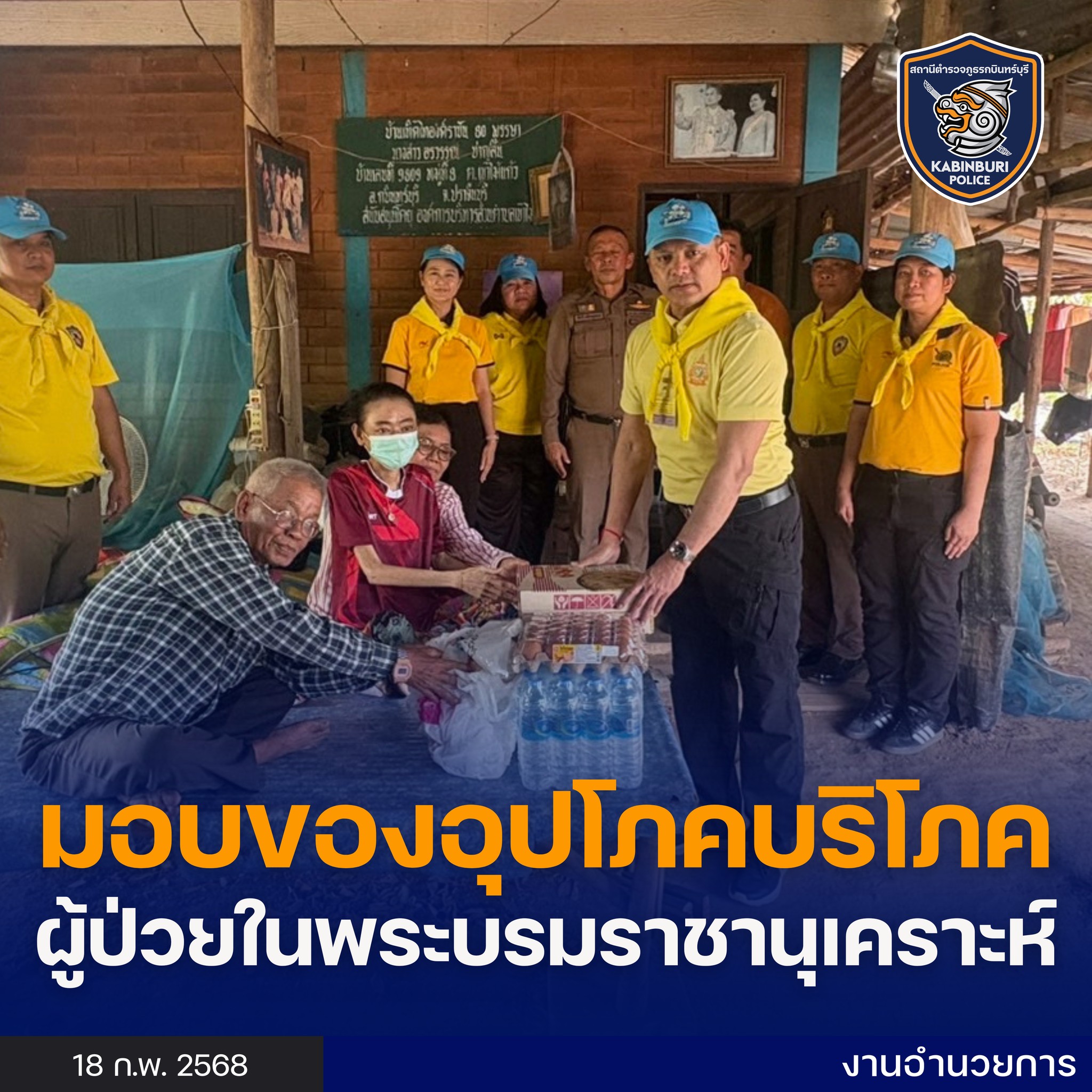 ผกก.สภ.กบินทร์บุรี พร้อมกำลังชุดจิตอาสา ร่วมกับผู้นำชุมชน เข้าตรวจเยี่ยม นางสาวอรวรรณ ชาญสิ้น ผู้ป่วยในพระบรมราชานุเคราะห์