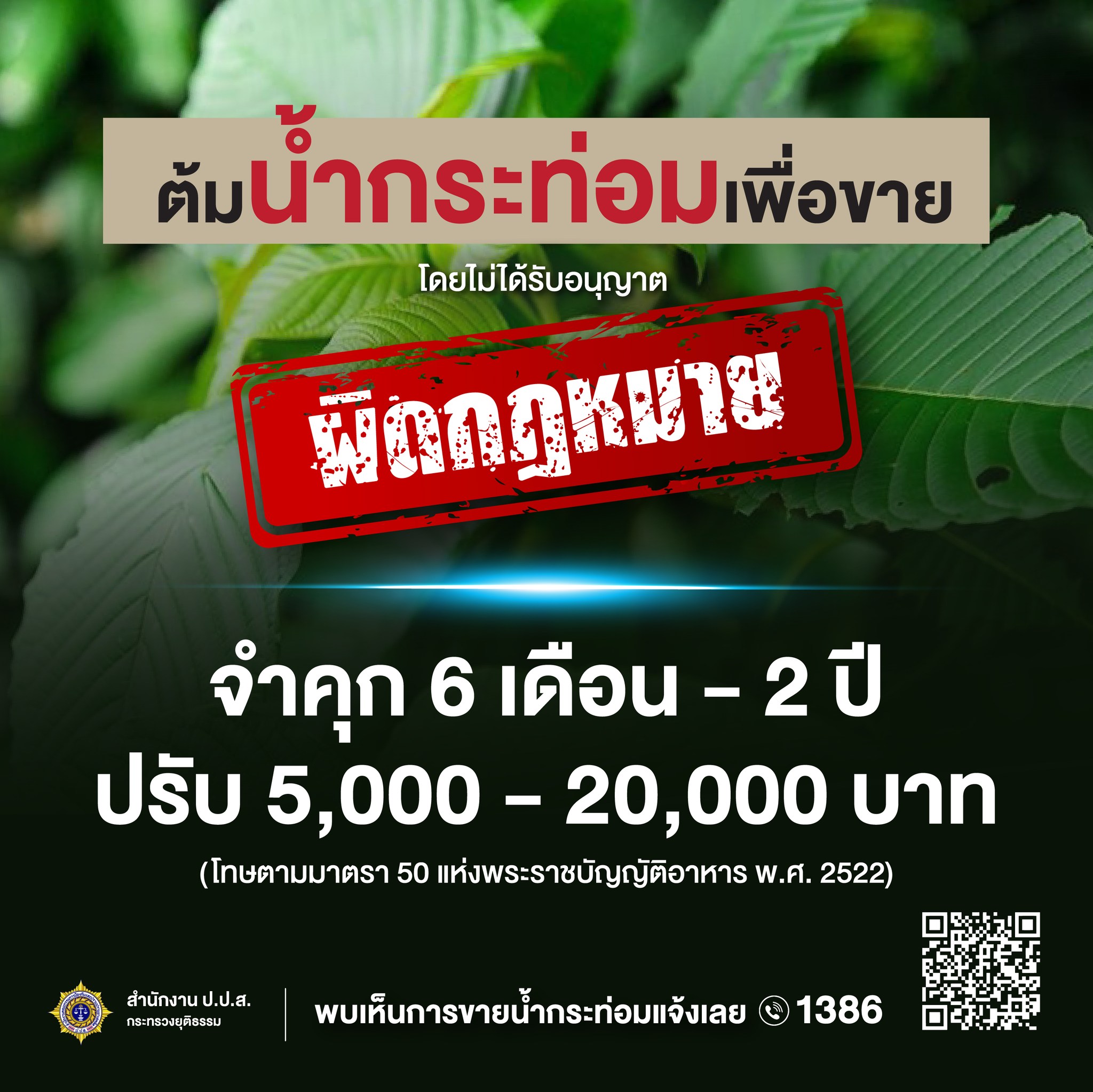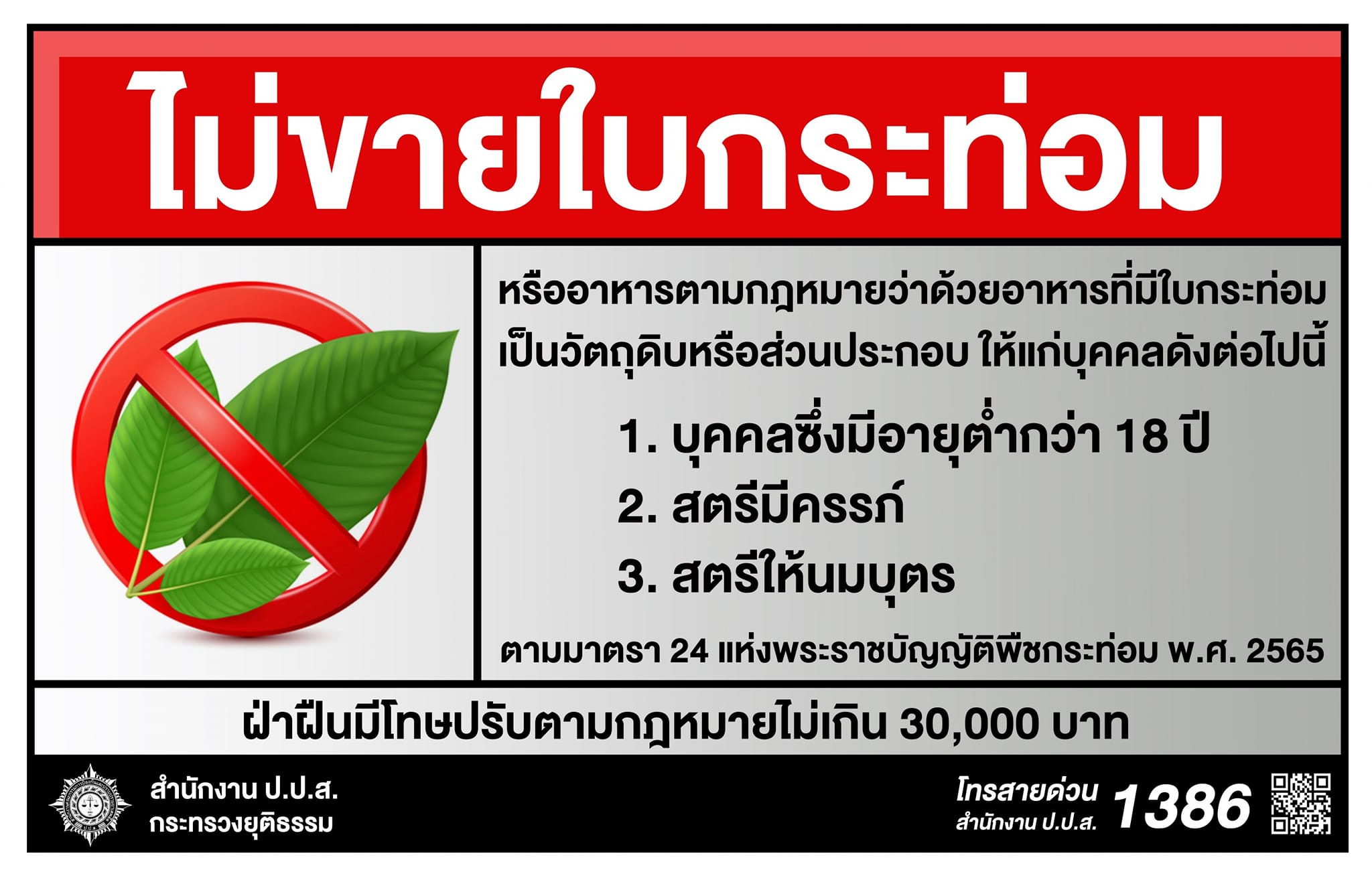 รู้หรือไม่ ? ขายใบกระท่อม ให้เด็กที่มีอายุต่ำกว่า18 ปี หญิงตั้งครรภ์-ให้นมบุตร ผิดกฎหมาย ตาม พ.ร.บ.