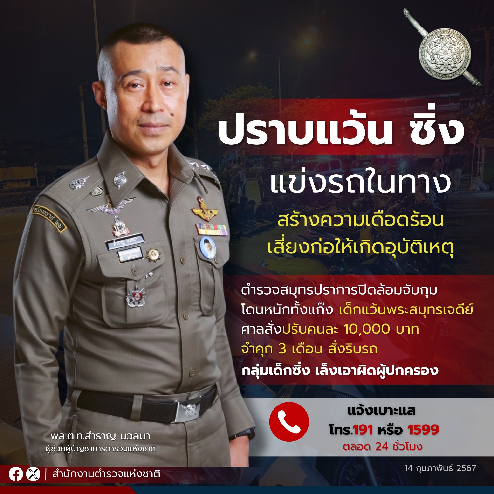 โดนหนักทั้งแก๊งแว้นซิ่งพระสมุทรเจดีย์ ศาลสั่งปรับหนักคนละ 10,000 บาท ทำทัณฑ์บน จำคุก 3 เดือน ริบรถทุ