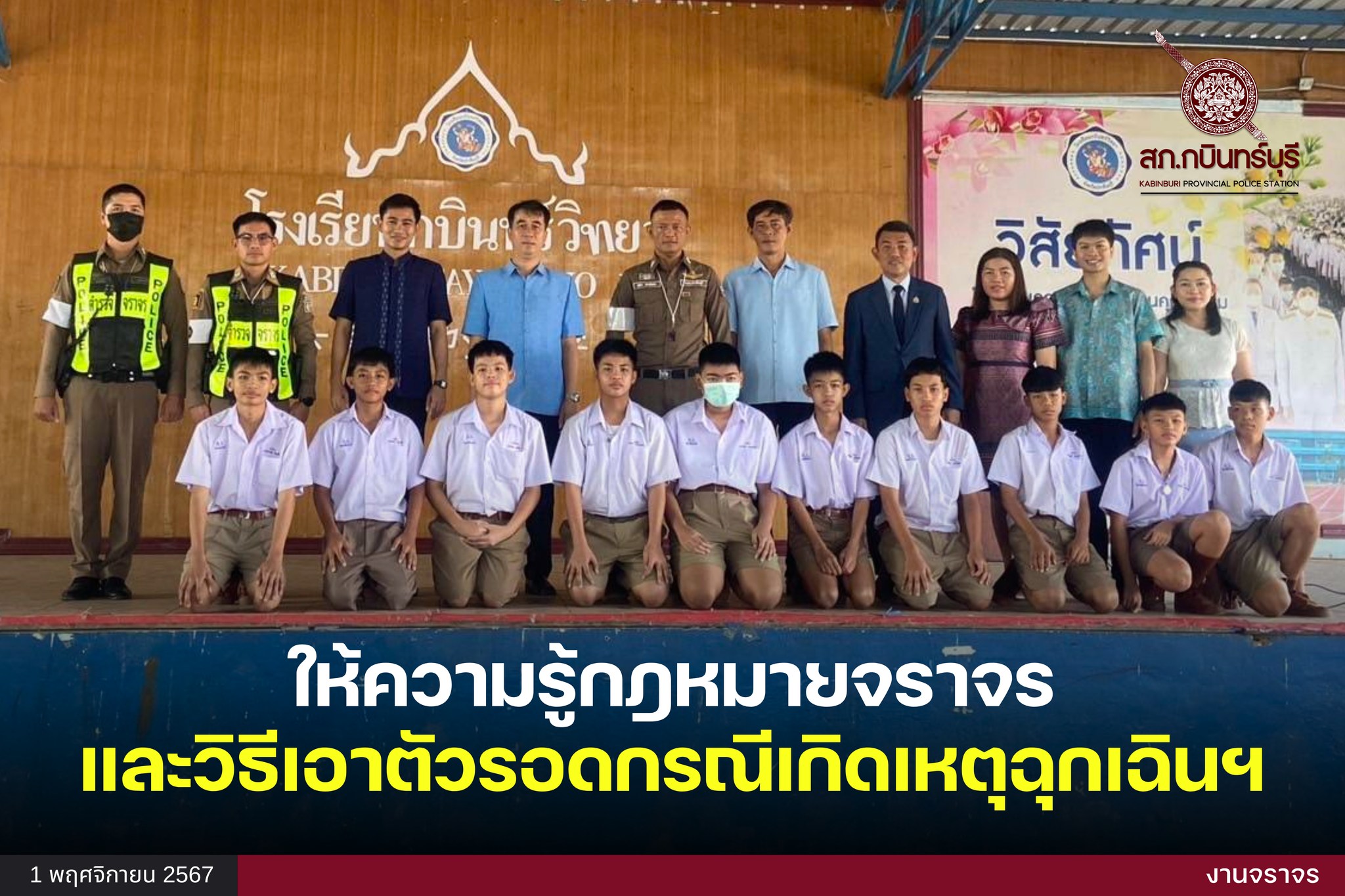 วันที่ 12 พ.ย.67 เวลา 07.20 น. ร.ต.อ.โกวิท กัดไธสง รอง สวป.สภ.กบินทร์บุรี ร้อยเวรจราจร พร้อม ร.ต.อ.ส