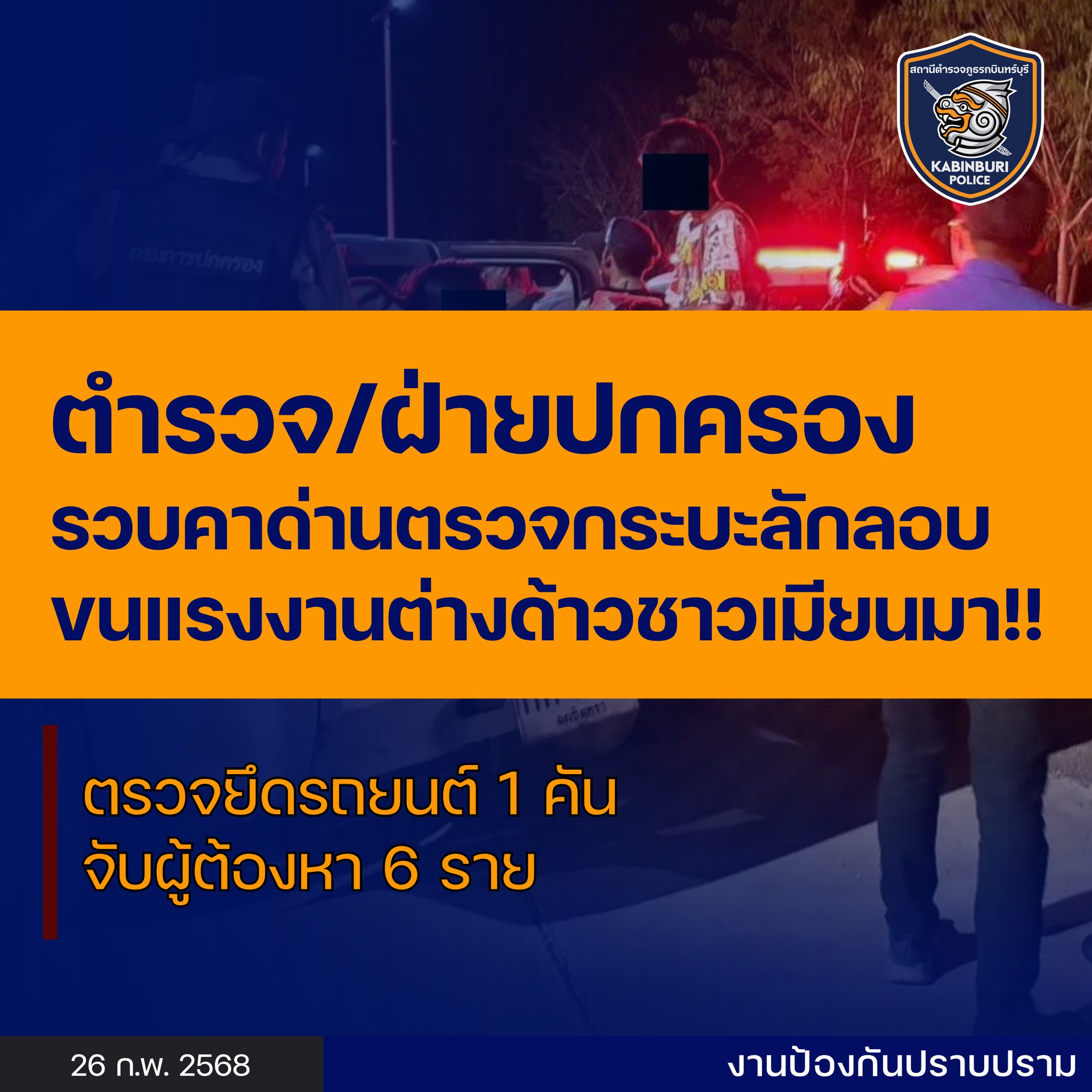ตำรวจ-ฝ่ายปกครอง ตั้งจุดตรวจจุดสกัดป้องกันปราบปรามอาชญากรรม ยาเสพติด อาวุธปืน บุคคลต่างด้าว และความผิดอื่นที่เกี่ยวข้อง จับกุมผู้ต้องหา 6 ราย