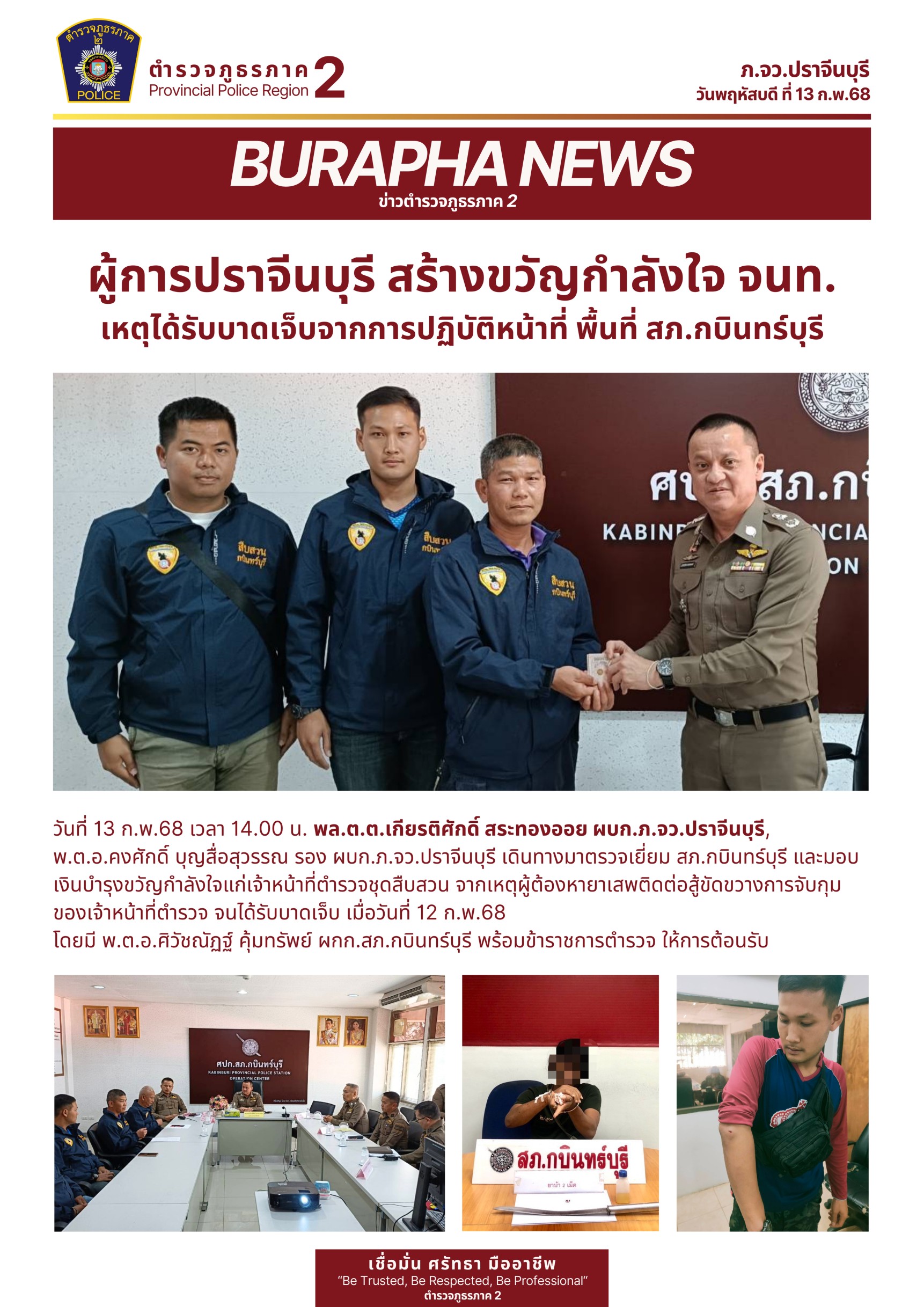 วันที่ 22 ก.พ.68 พ.ต.อ.ศิวัชณัฏฐ์ คุ้มทรัพย์ ผกก.สภ.กบินทร์บุรี, พ.ต.ท.ชูเกียรติ สุขสวัสดิ์ รอง ผกก.