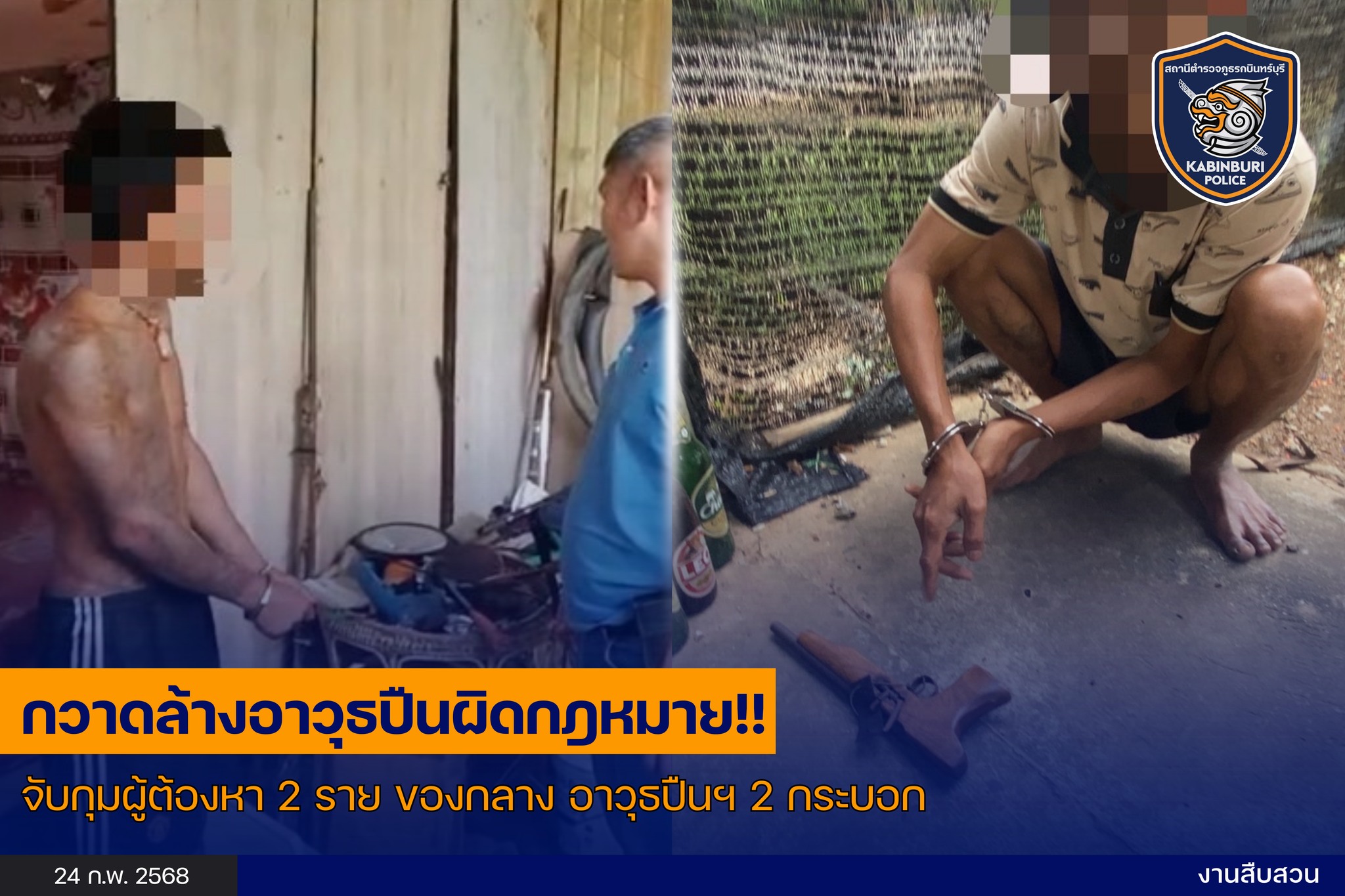 ชุดสืบสวนจับกุมตัวผู้ต้องหา จำนวน 2 ราย ตรวจยึดอาวุธปืน 2 กระบอก