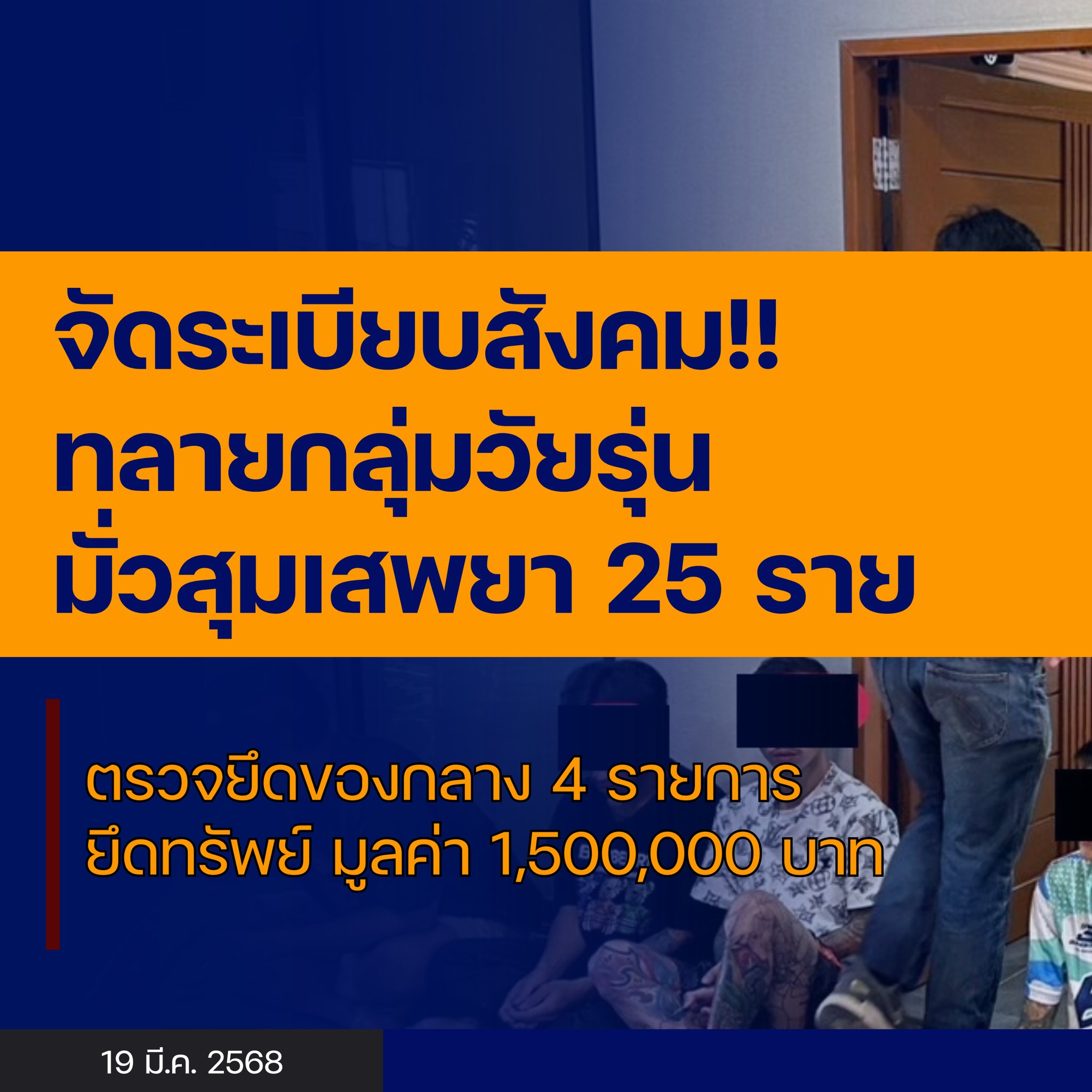 จัดระเบียบสังคม ทลายกลุ่มวัยรุ่นมั่วสุมเสพยา