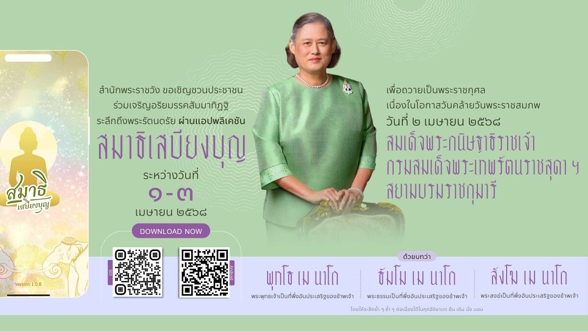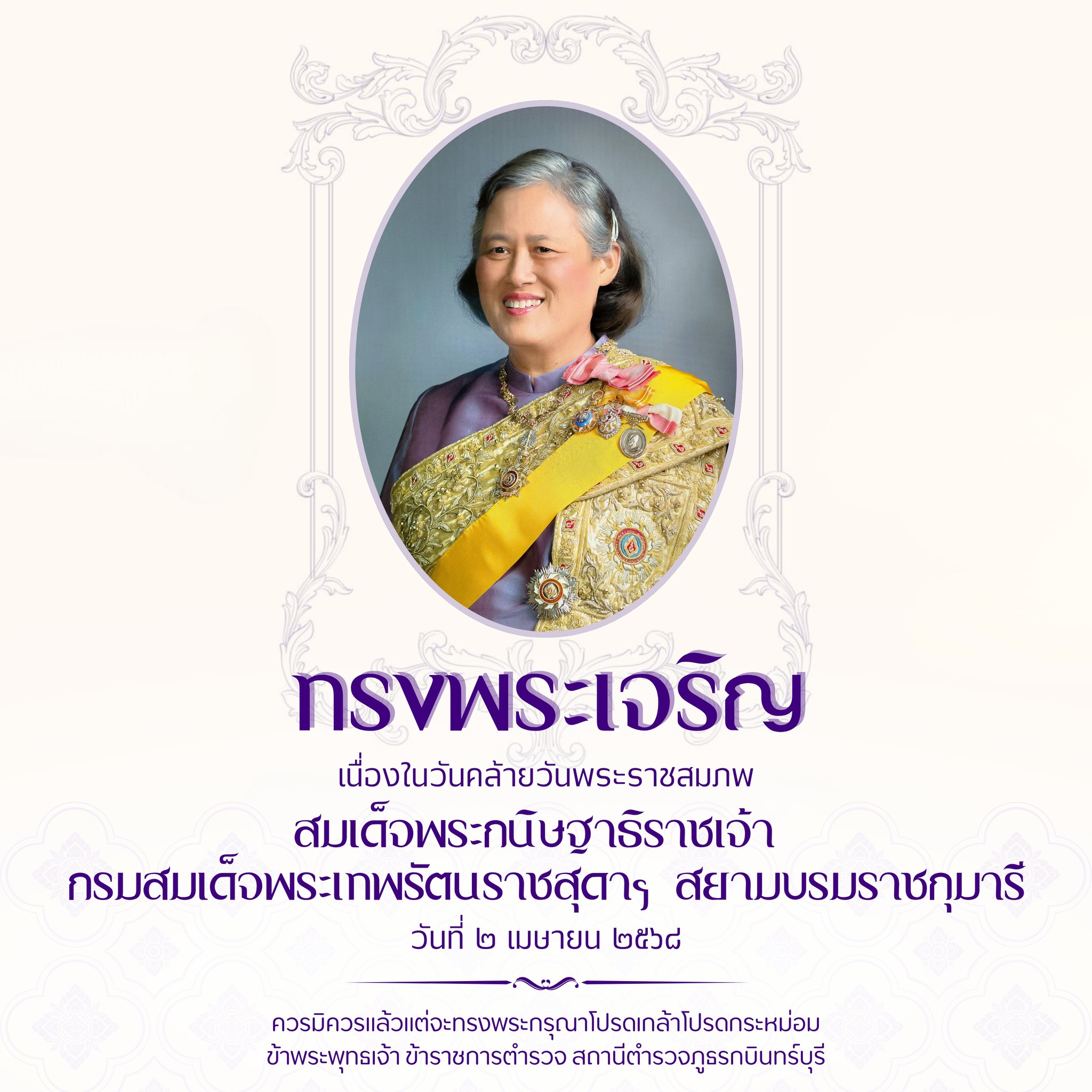 ขอพระองค์ทรงพระเจริญ เนื่องในวันคล้ายวันพระราชสมภพ สมเด็จพระกนิษฐาธิราชเจ้า กรมสมเด็จพระเทพรัตนราชสุดา เจ้าฟ้ามหาจักรีสิรินธร มหาวชิราลงกรณวรราชภักดี สิริกิจการิณีพีรยพัฒน รัฐสีมาคุณากรปิยชาติ สยามบรมราชกุมารี ๒ เมษายน ๒๕๖๘