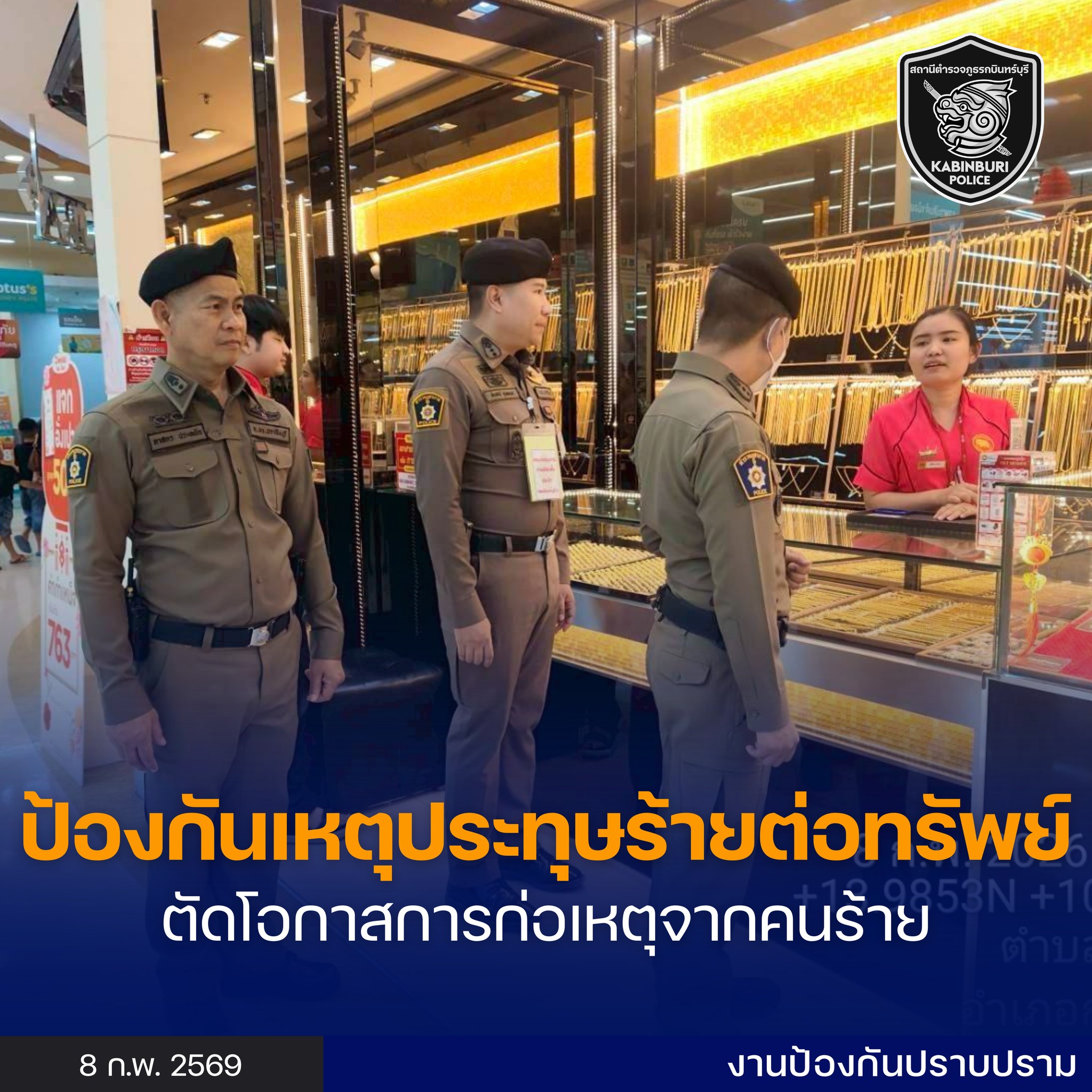 วันที่ 8 ก.พ.69 พ.ต.อ.กิตติพงศ์ พันธ์ศรี รอง ผบก.ภ.จว.ปราจีนบุรี, พ.ต.อ.สัณทัศน์ ภูวดลกนก ผกก.สภ.กบิ
