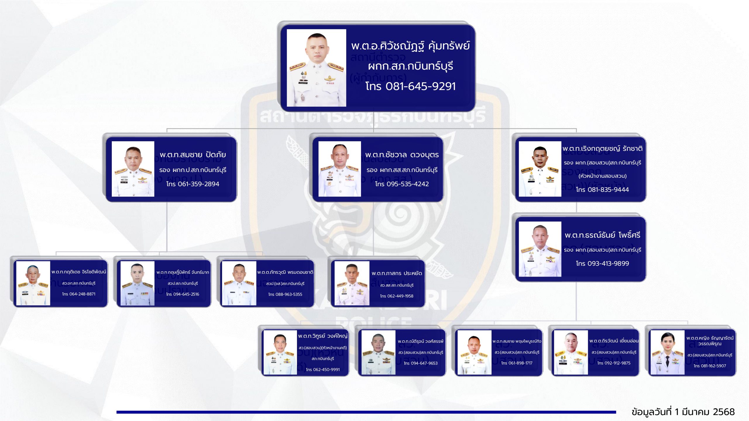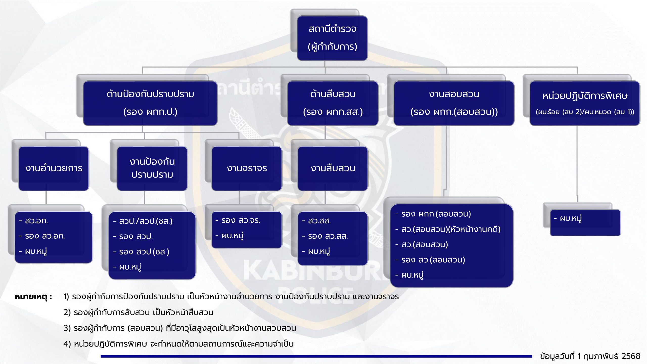 1. โครงสร้างการแบ่งส่วนราชการของสถานีตำรวจ (Organization Charts)